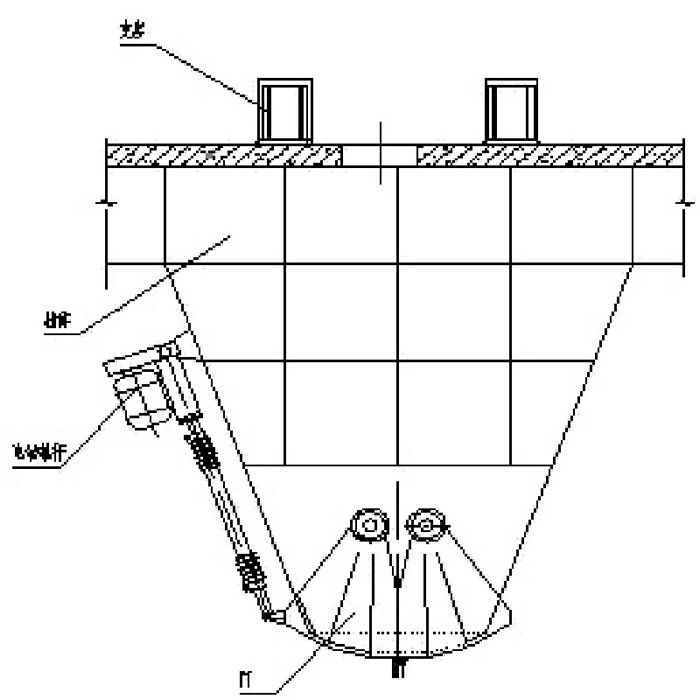 電動(dòng)泥斗主要部件有儲(chǔ)泥斗、活動(dòng)門、電動(dòng)推桿和控制箱四大部分組成。如下圖